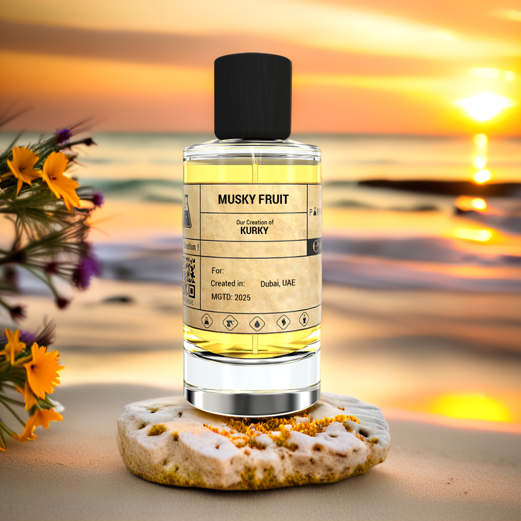 MUSKY FRUIT is a luminous unisex fragrance that celebrates the perfect harmony of fruit and musk — inspired by Maison Francis Kurkdjian KURKY, and handcrafted in Dubai by Arabian master perfumers.